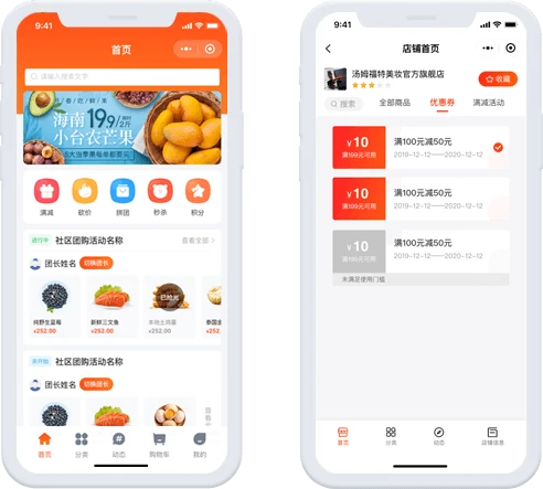 丰富的营销活动和分享功能可以活跃群员,帮助商城吸引更多的用户
