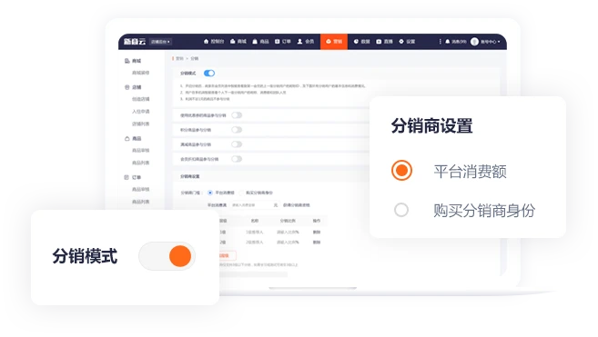 二级分销模式,满足分销门槛即可成为分销商,快速实现分销裂变